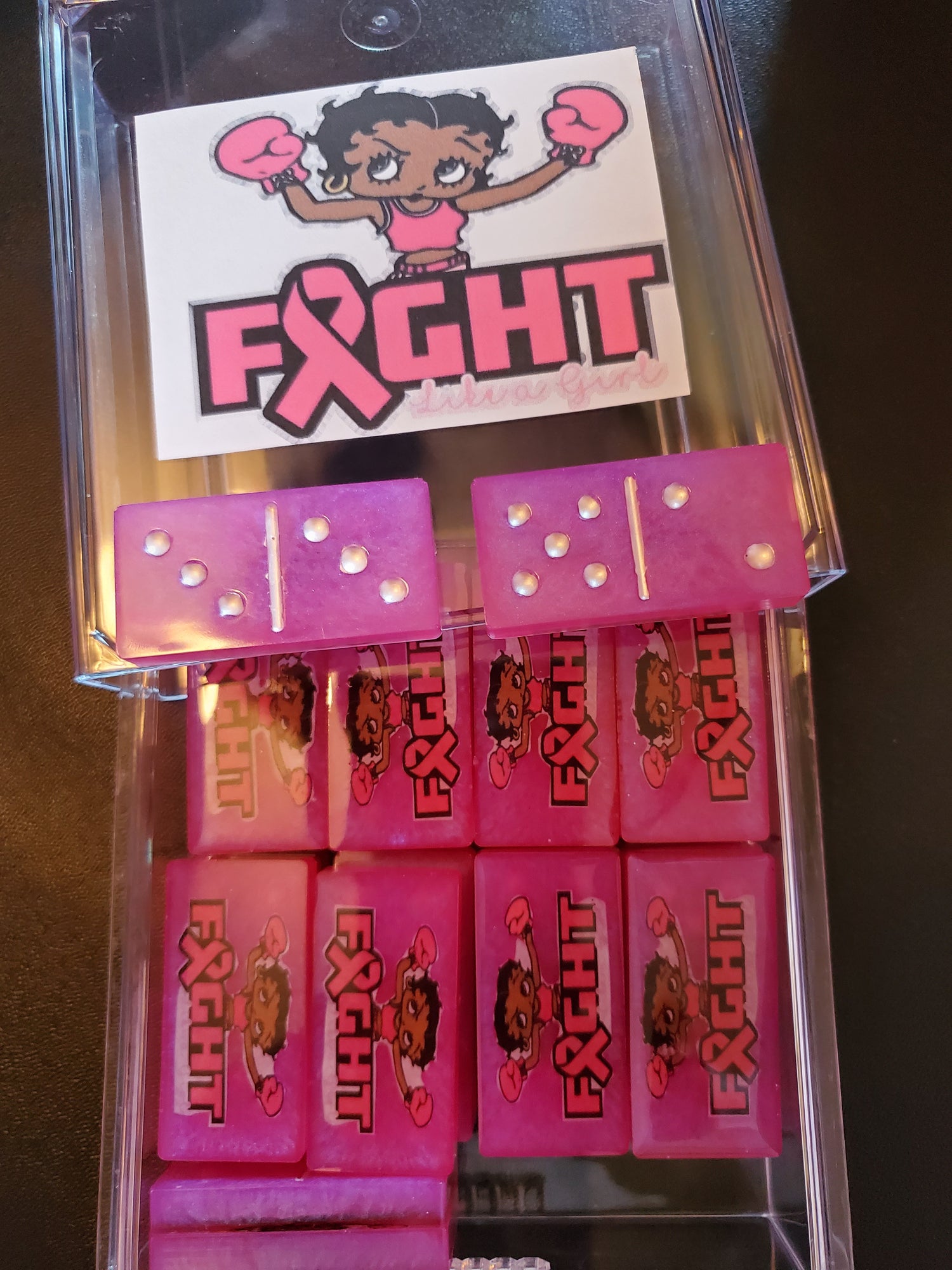 Standard size dominoes made of resin and customized for your liking.