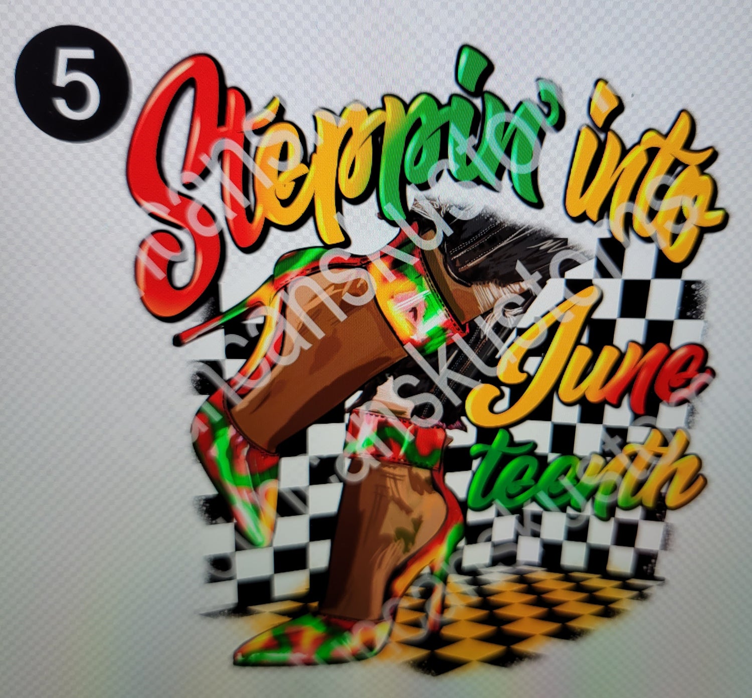 Kustom full color Juneteenth images printed on 100% cotton Tshirts